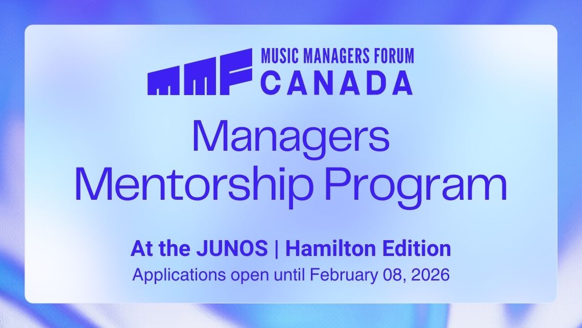 Music managers who are attending JUNO Awards in Hamilton this year are invited to apply for the MMF Canada Managers Mentorship program. This opportunity connects participants with mentors who will provide coaching, guidance and support while at JUNOS. Selected manager mentees will have the chance to also connect and share resources as a cohort.
